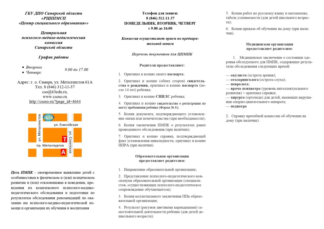 Единый телефон психолого-медико-педагогической комиссии Самарской области